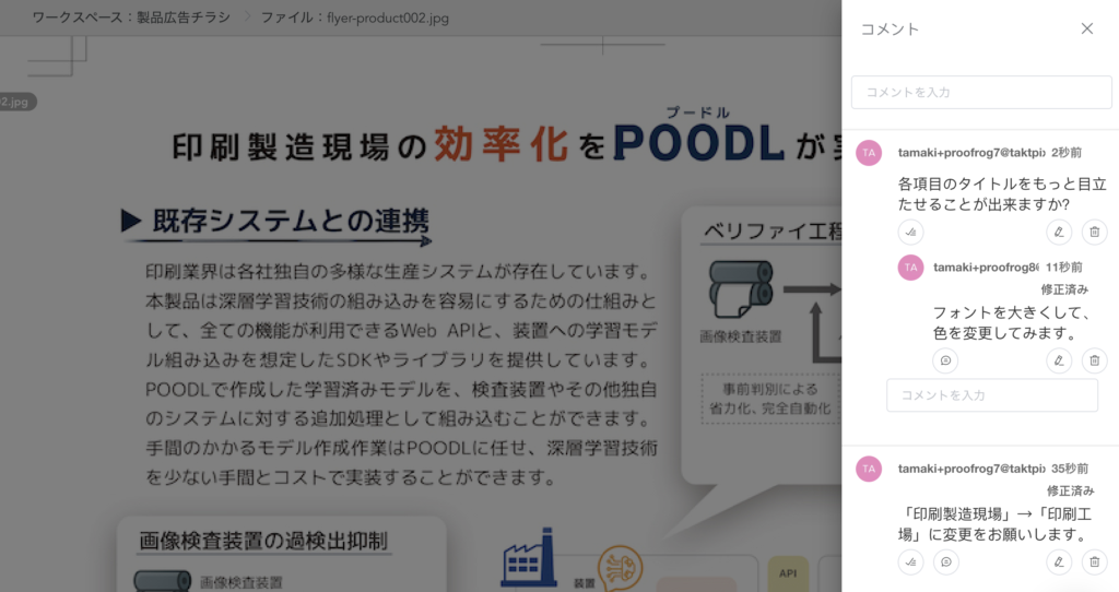 proofrog 開発チームでは、日々機能向上やバグの修正を行っております。ご要望がございましたらお気軽に右下のお問い合わせよりご連絡ください。