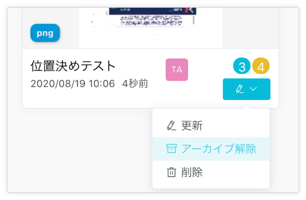 ②アーカイブの解除